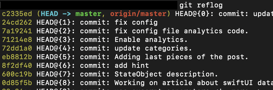 To do so, we need to open the terminal and type: git reflog, it should spit out something similar to this: